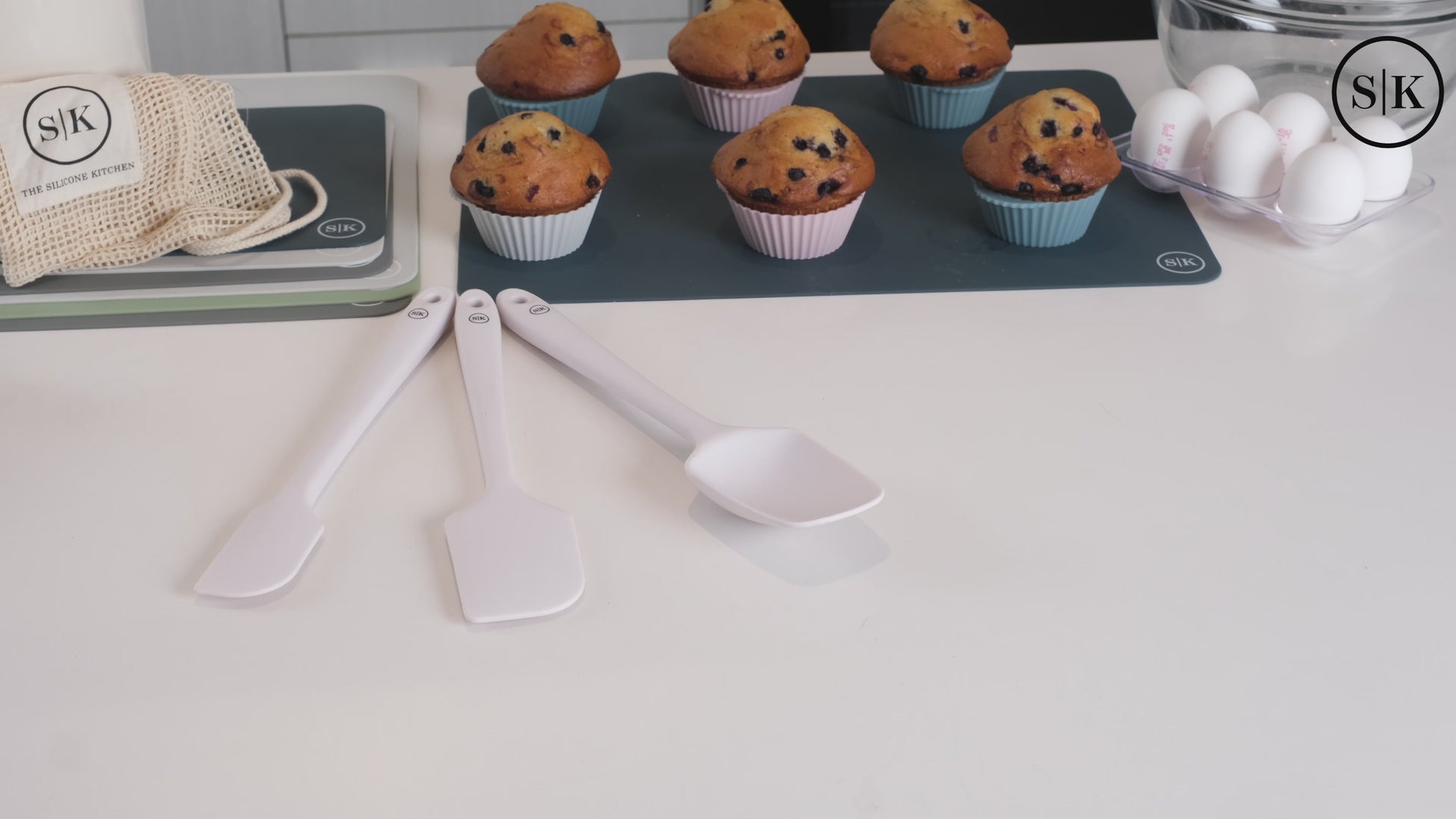- INCLUDES Each set includes one spatula, one skinny spatula, and one spoonula in Designer White with a signature The Silicone Kitchen cotton mesh bag
