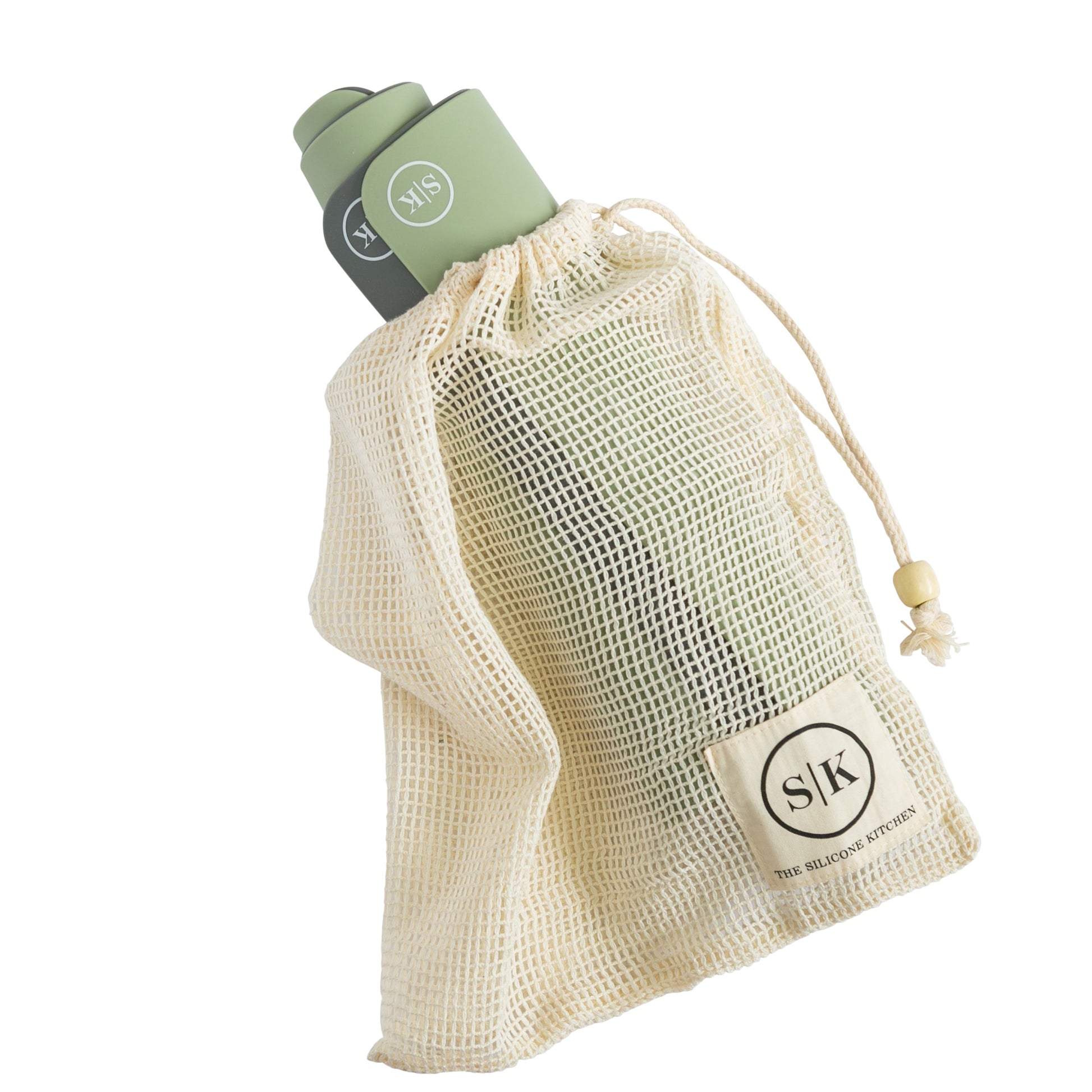 - INCLUDES Includes two half-sheet silicone baking mats (one sage green, one dark gray), and two quarter-sheet silicone baking mats (one sage green, one dark gray). Each pair comes packaged in a cotton, reusable produce bag – great for storage and use at your local farmer’s market, also makes for great presentation for gift-giving