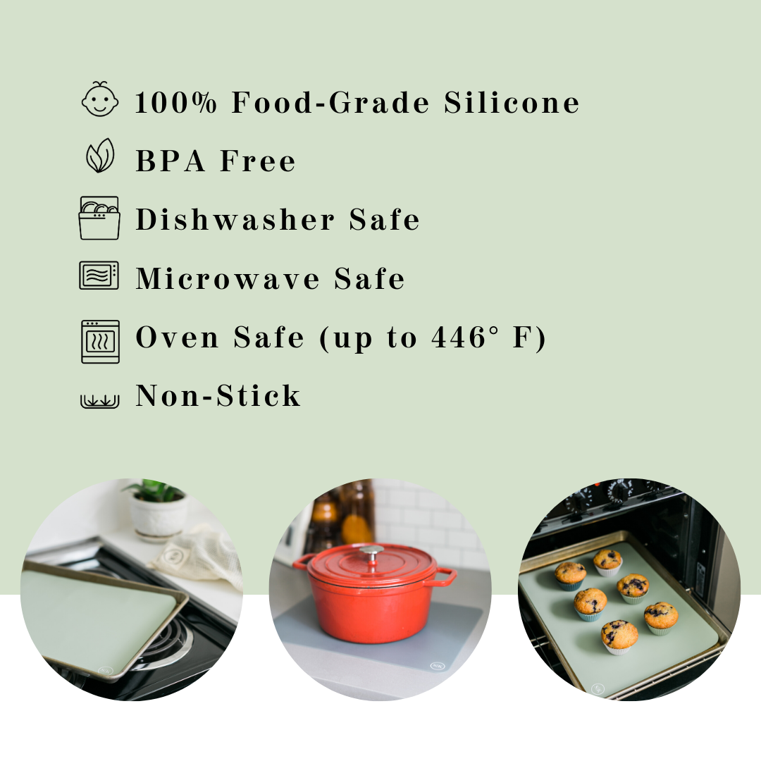 - NON-STICK & NON-SKID Great for kneading dough, pastries, roasting vegetables, baking cookies and more. The 100% food-grade silicone is non-stick, therefore there is no need for grease or non-stick spray, parchment paper, aluminum foil or other surface protectors. Non-skid back makes for easy kneading dough without moving the mat, as well as an ideal countertop protector and/or table or dinner mat for adults, children, toddlers and more